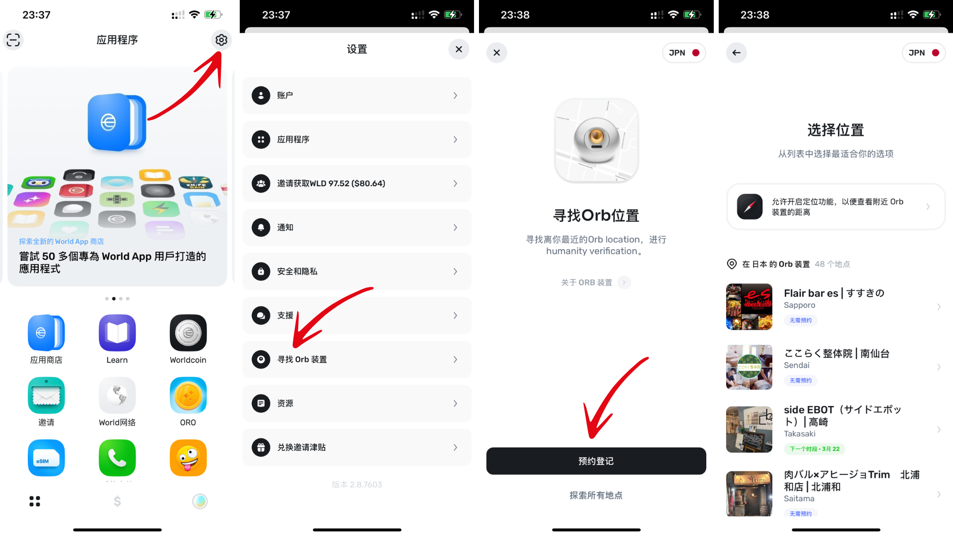📍 访问附近的 Orb 设备(可在 Worldcoin 官网查询最近的地点),进行 虹膜扫描,验证 World ID。