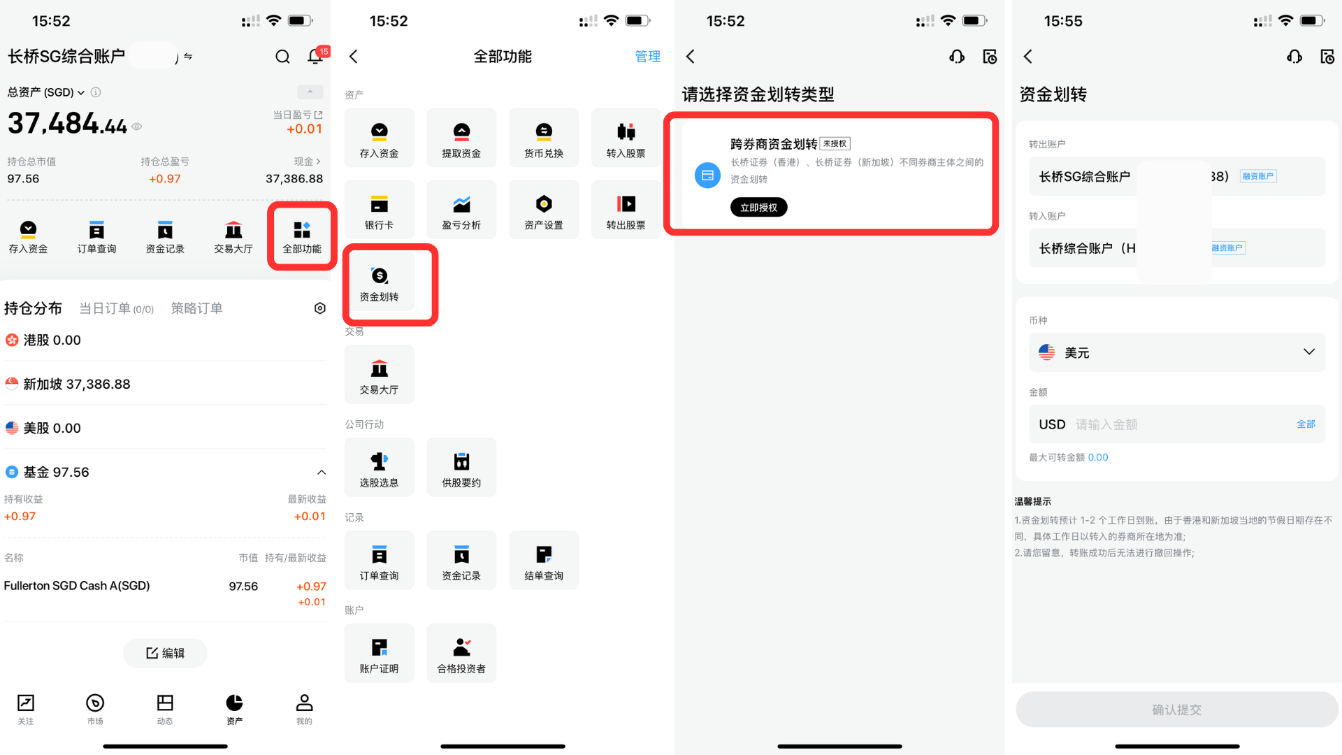 长桥新加坡与长桥香港账户之间支持免费、极速、跨版本资金划转!