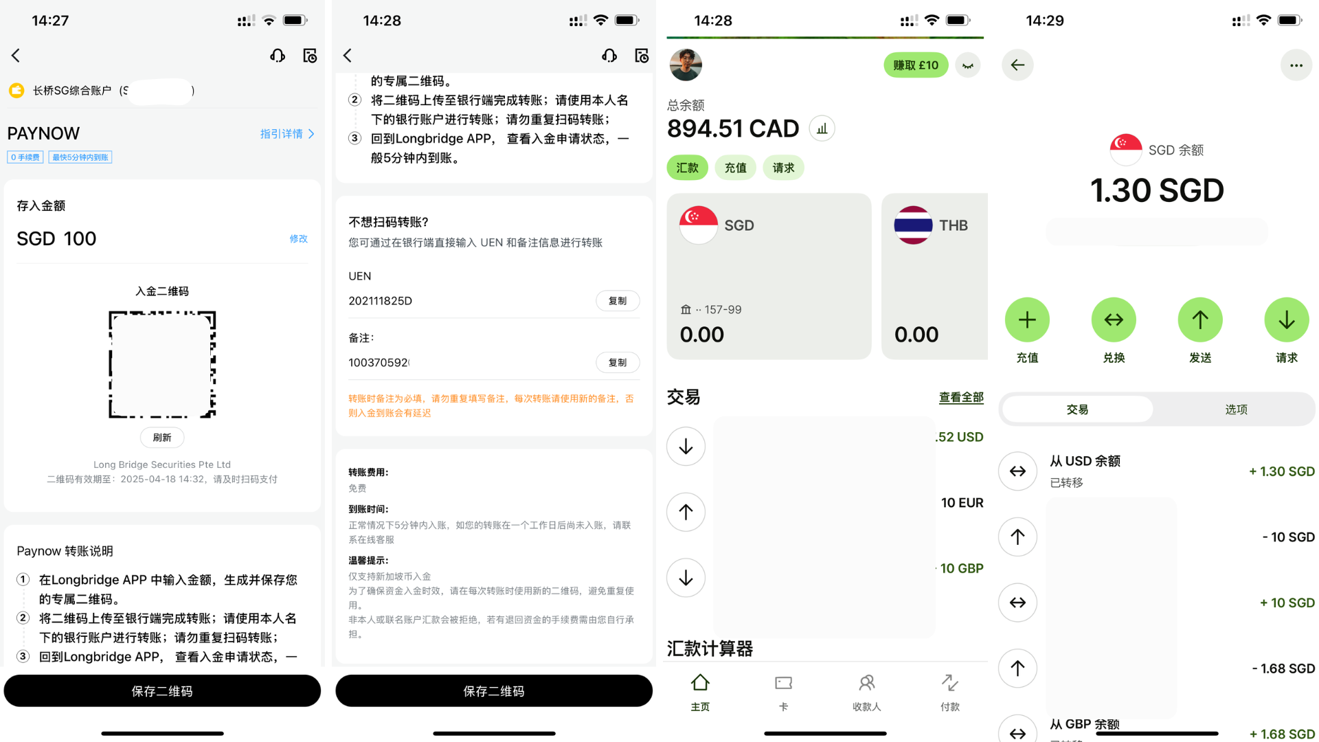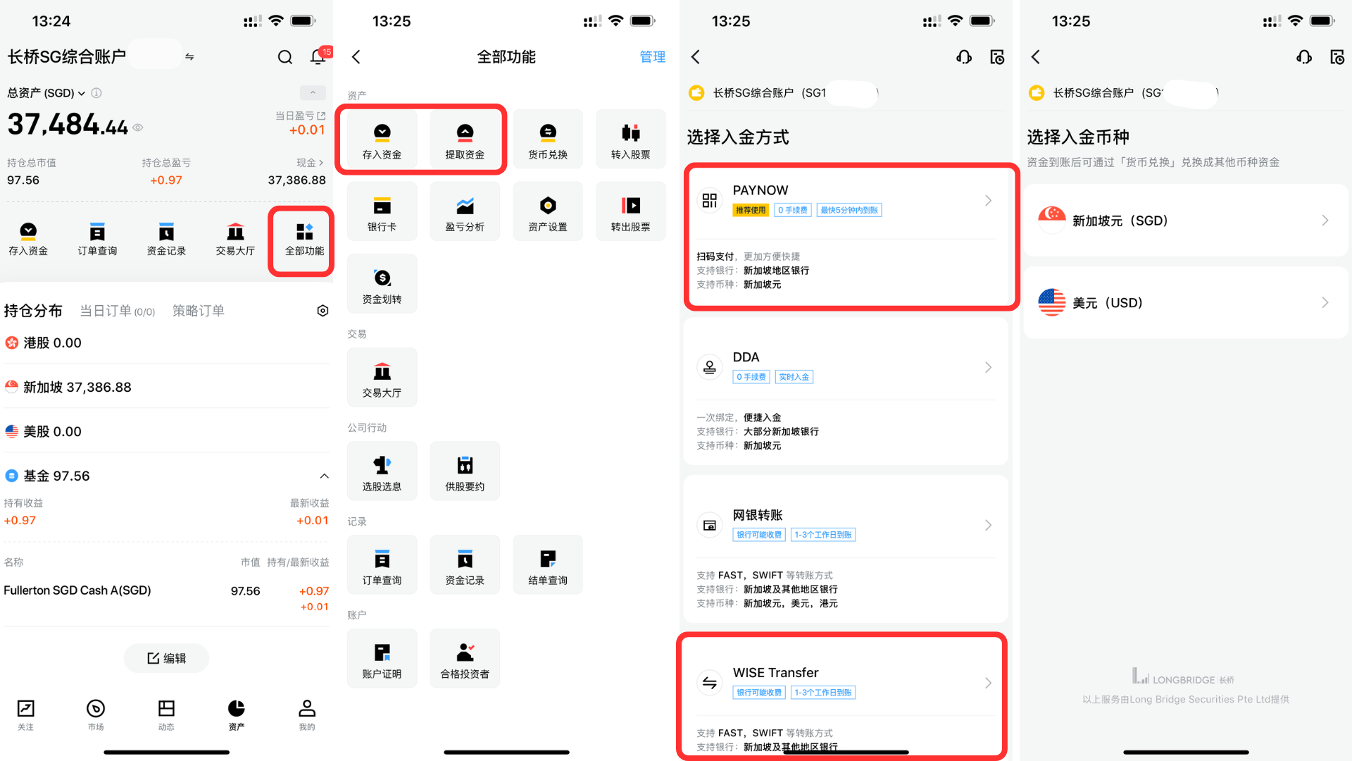- 打开长桥新加坡 APP,点击“存入资金”,选择 PayNow 方式。