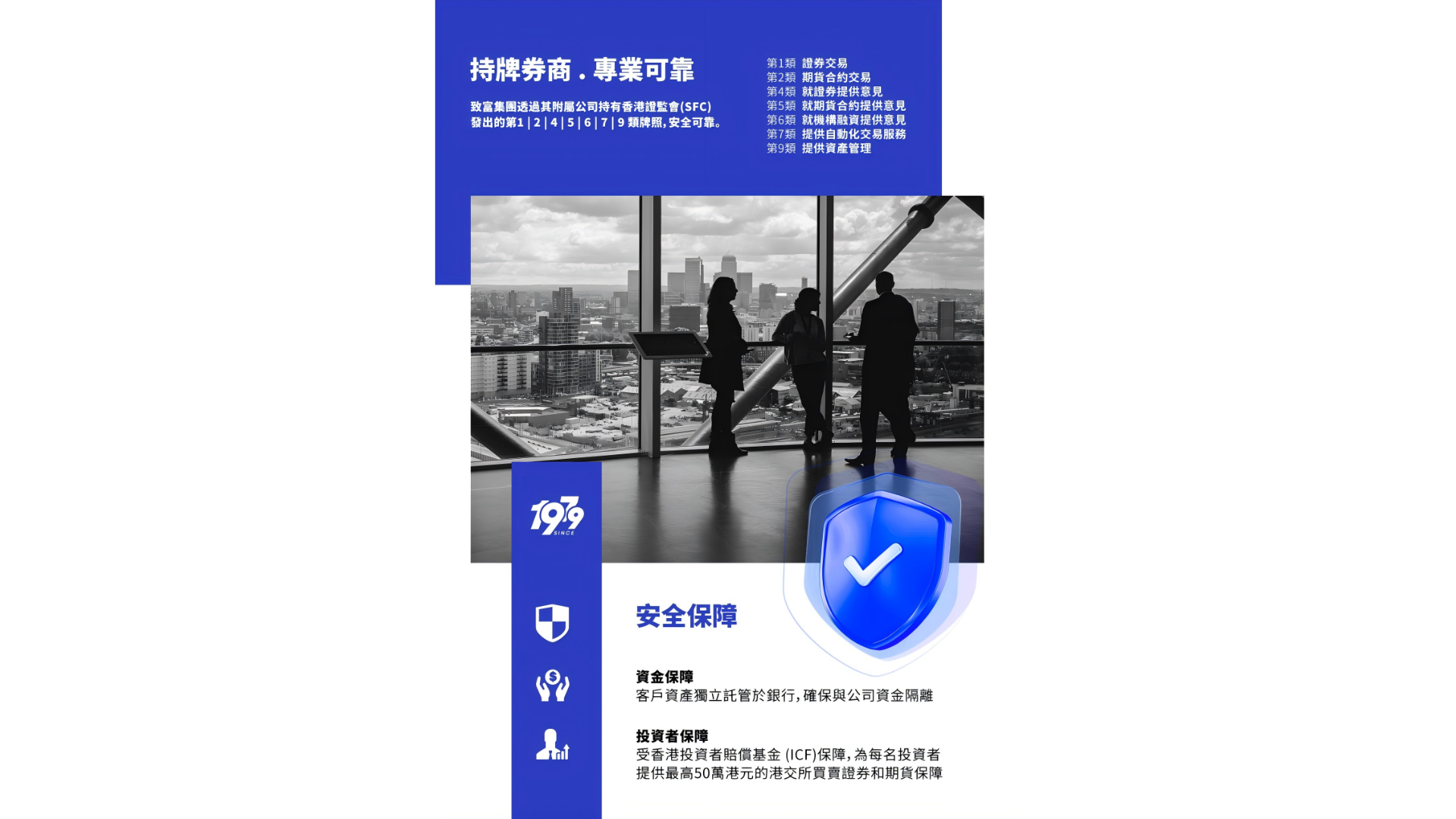 - 持有香港证监会(SFC)第1、2、4、5、6、7、9类牌照