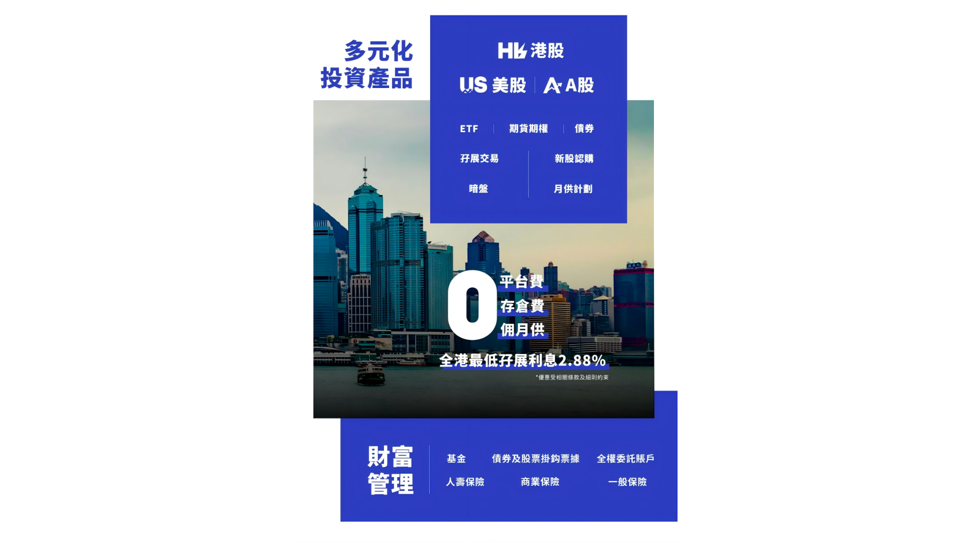 - 0佣金月供计划(港股、美股、基金),门槛低至US$1,超过600只港美股可选
